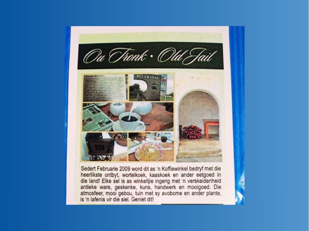 If you’re passing through Riversdal – or even if you’re not – make Die Ou Tronk a destination. Come for the history, stay for the creativity, breathe in the atmosphere, and definitely order the carrot cake.
